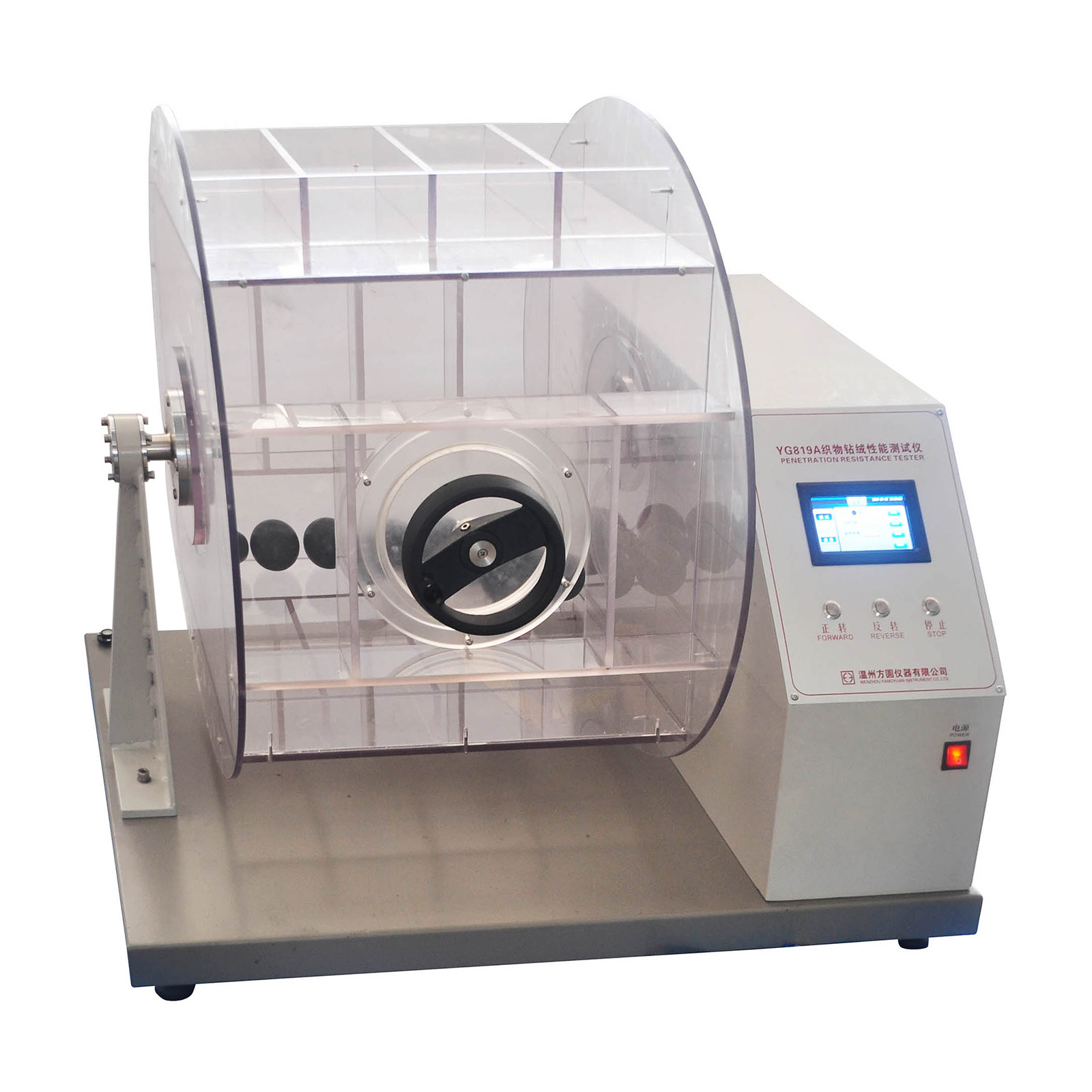 YG819A織物鉆絨性能測試儀 符合標準:GB/T12705.2-2009等標準。